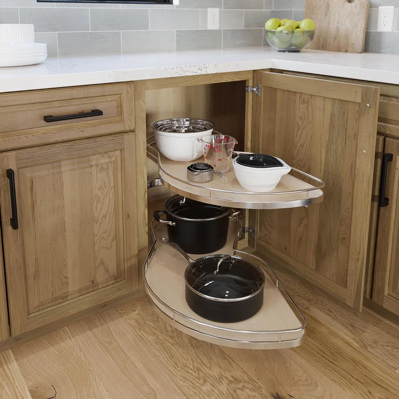 Corners are often hard to reach spaces, but modern cabinetry has a solution. Lazy Susans, pull-out trays, and swing-out shelves allow you to use the full depth of corner cabinets. No more crouching to find that pot or pan buried in the back.