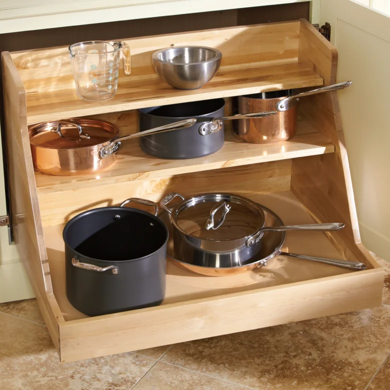 Deep cabinets can feel like wasted space, but pull-out storage options solve that problem. Trays, shelves, and roll-out drawers glide forward to bring everything within reach. These solutions make it easy to see and grab items from both sides, maximizing every inch of space. They are especially helpful for organizing dry goods, heavy pots and pans, or small appliances that would otherwise get lost in the back.